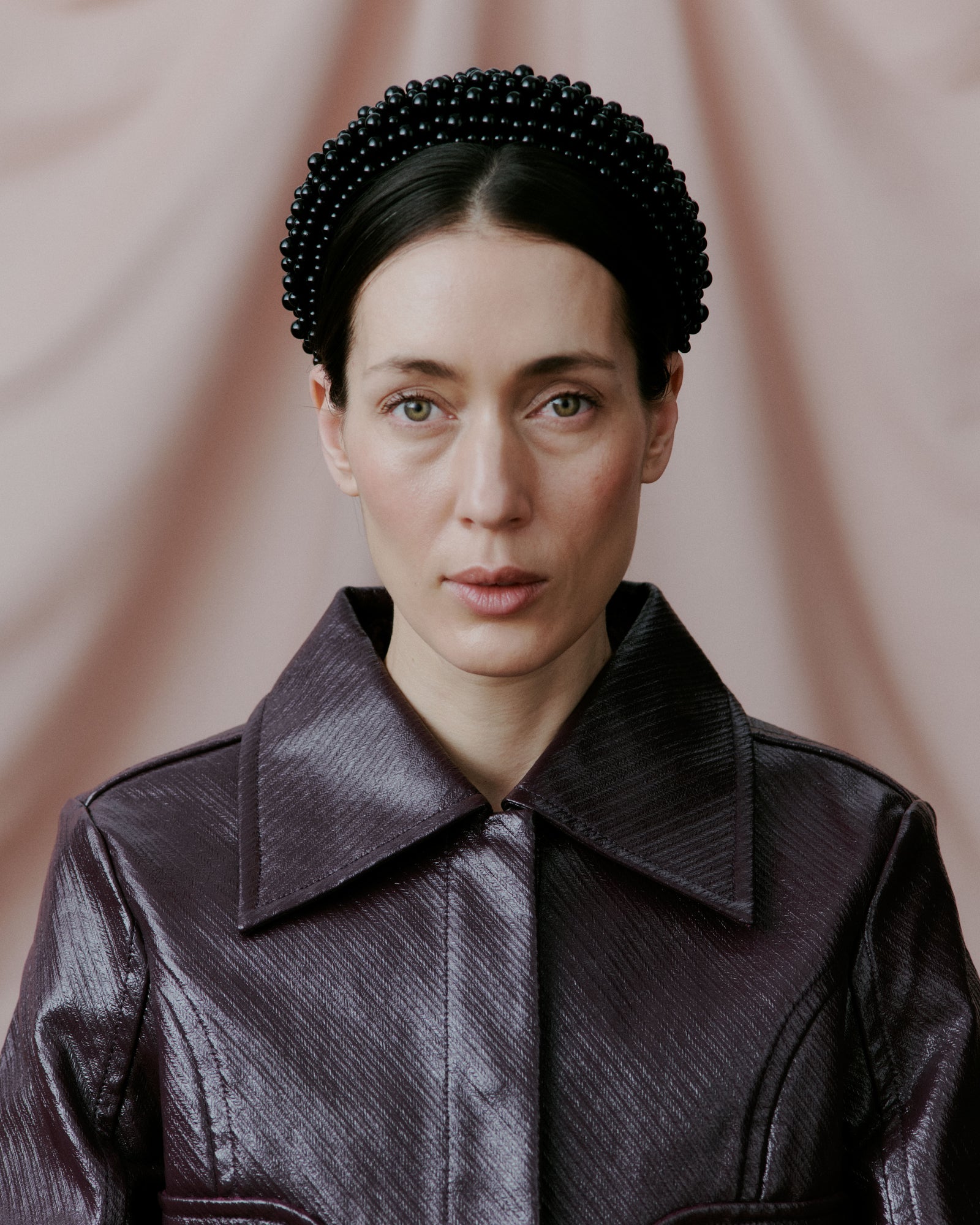 This wide hairband is adorned with delicate black beads and made from soft velour. The padded design adds a bit of height and gives it an elegant look.