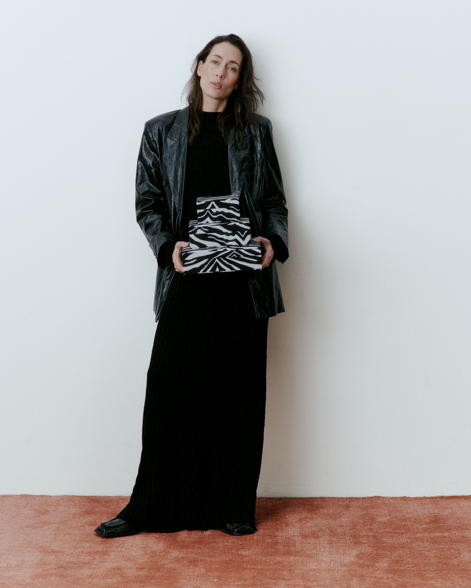 A medium-sized jewellery case with ample storage and practical organisation. The jacquard zebra exterior, velour interior, and magnetic closure make it both functional and stylish.