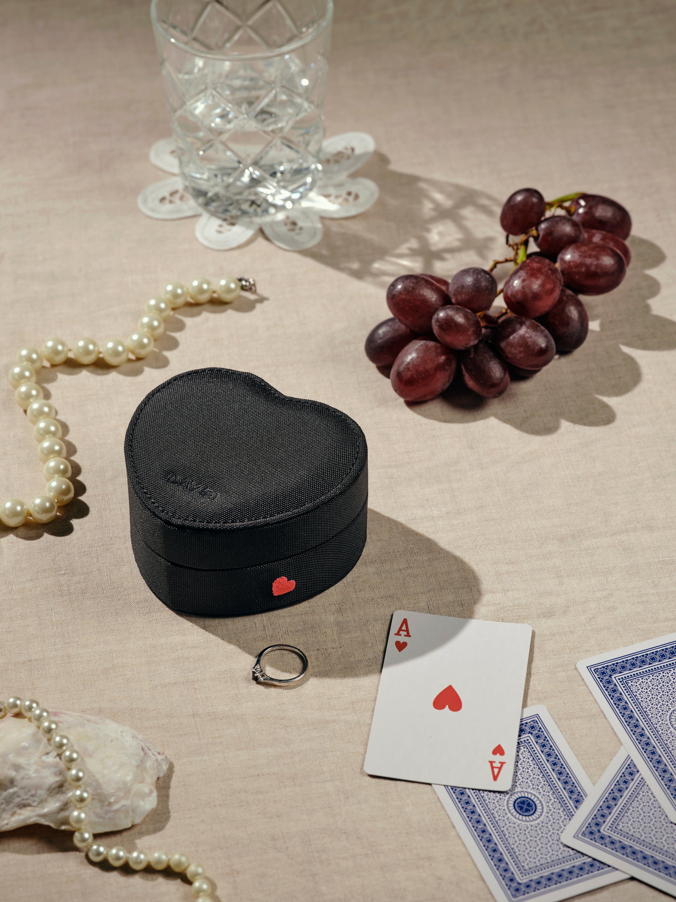 This small jewellery box is perfect for storing your favourite jewellery both at home and on the go. It is shaped like a heart with a pink heart embroidered on one side. It protects your jewellery and keeps them organised. It is perfect as a gift!