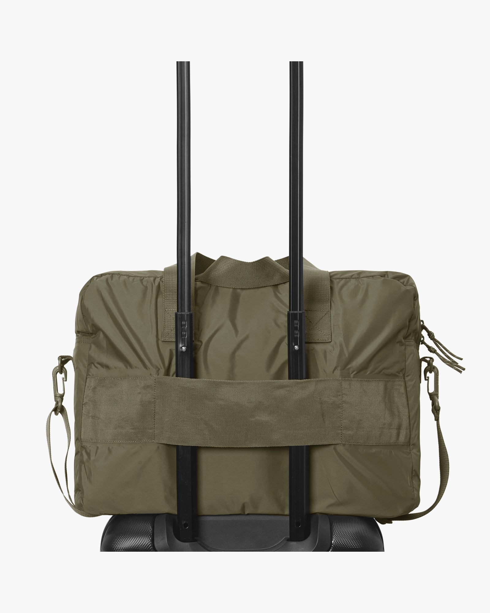 This unisex and functional bag is designed in a 100% certified recycled water-repellent material, capable of withstanding a water column pressure of 2100 mm. It features a waterproof zipper and includes both an internal and an external pocket for organisation of your belongings. The bag is equipped with two shorter handles and a detachable, adjustable strap, allowing you to wear it over your shoulder or as a crossbody. Additionally, it has a strap at the back for attaching the bag to a suitcase, and it is designed in a lightweight material.