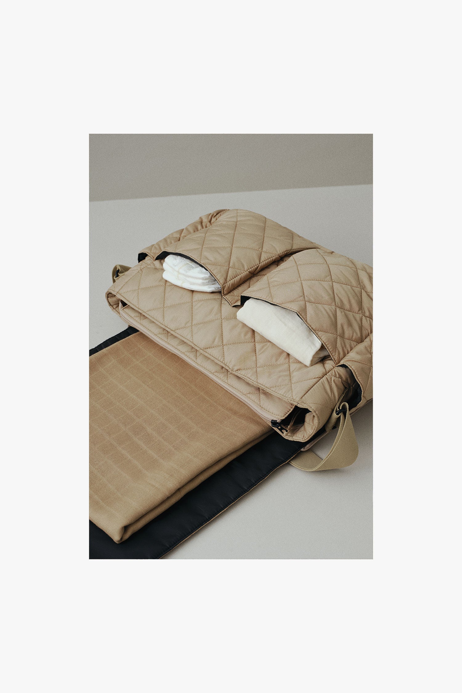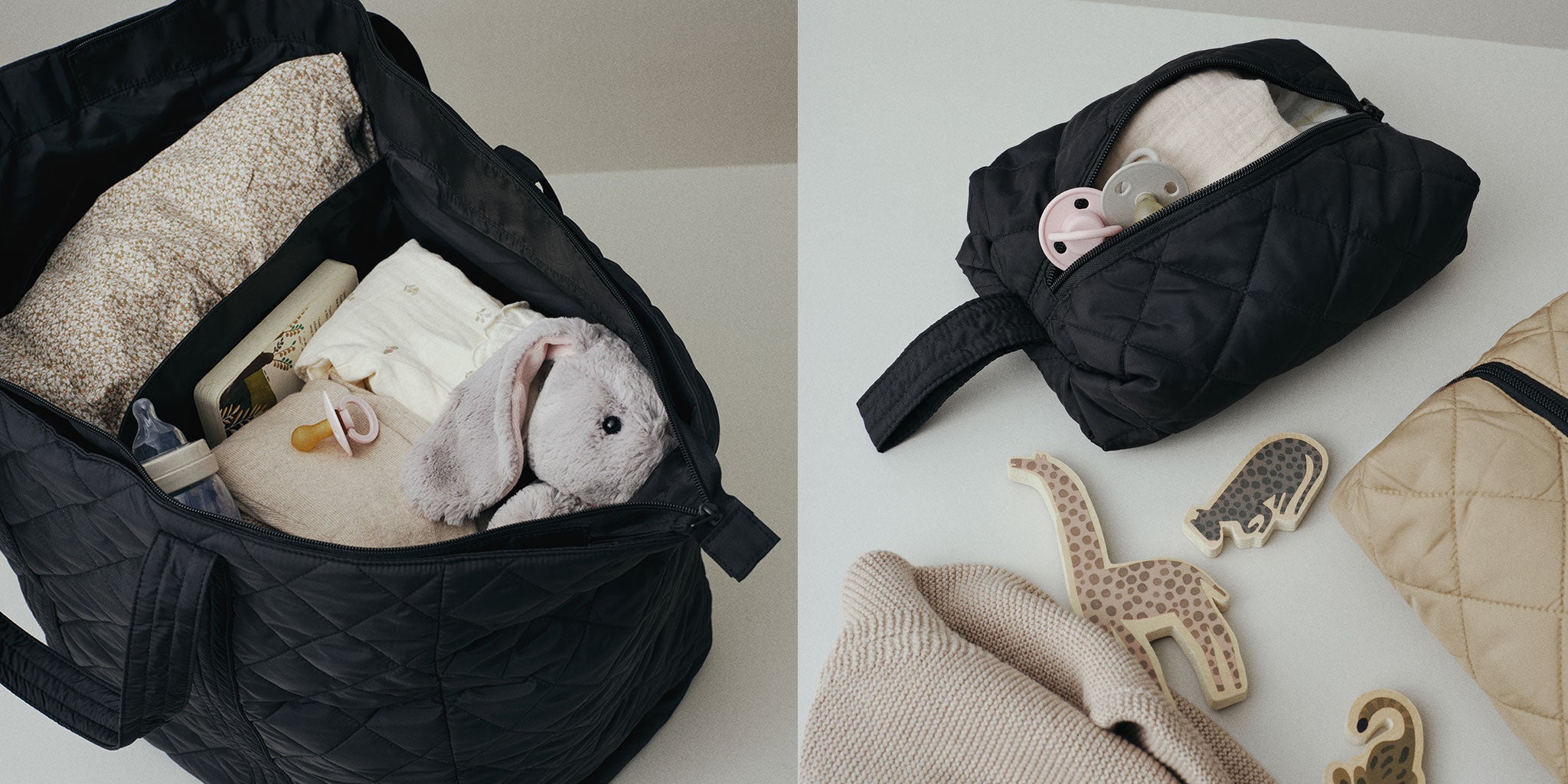 Fremstillet af blødt, quiltet stof kombinerer denne kollektion komfort, stil og funktionalitet. Hvert design er skabt til hverdagsbrug og giver praktisk opbevaring uden at gå på kompromis med kvaliteten. Uanset om du er på farten eller hygger derhjemme, er denne kollektion perfekt til at holde både mor og barn komfortable og velorganiserede.
