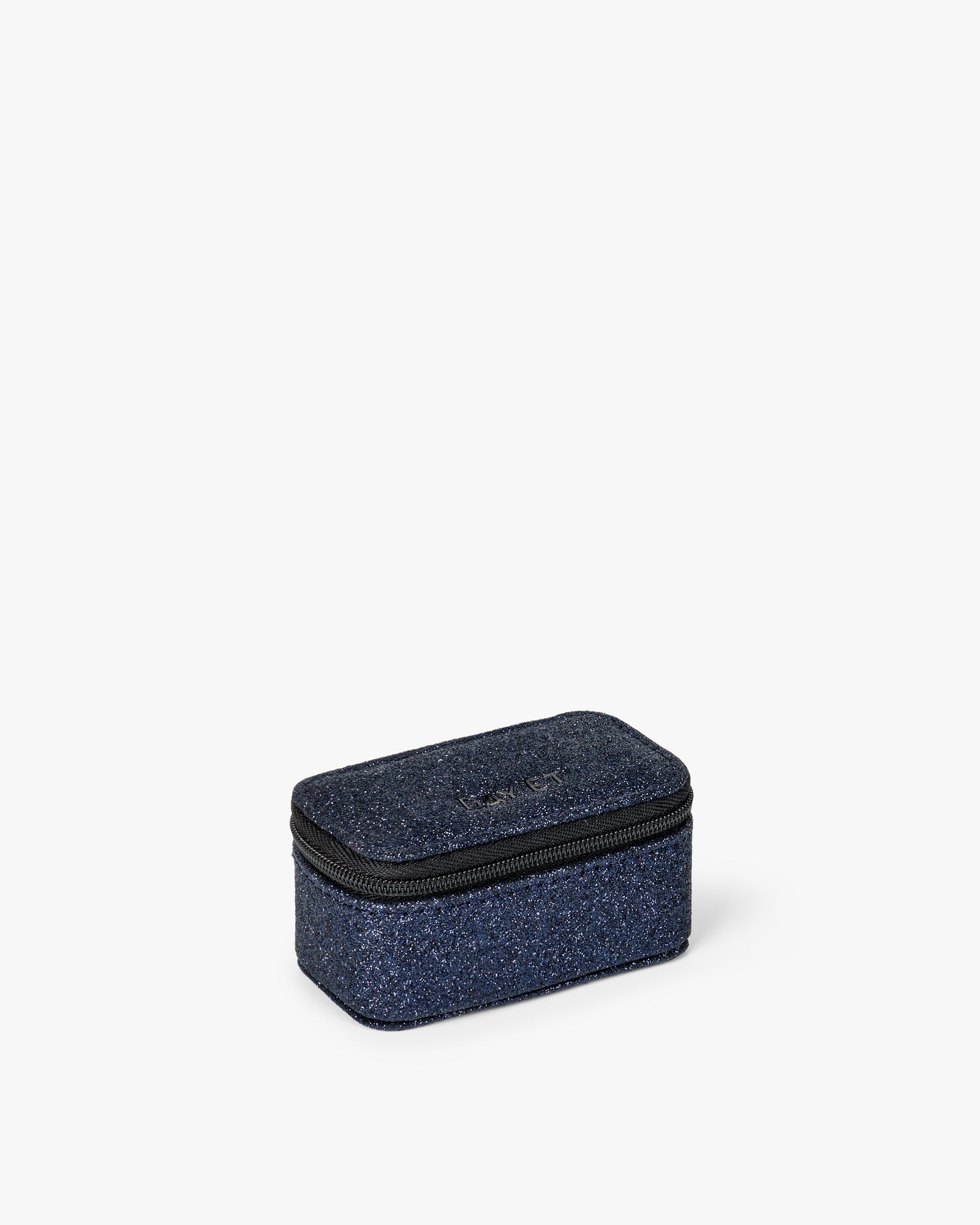 Et mini smykkeskrin med plads til det vigtigste – perfekt til dig, der gerne vil have dine smykker med på farten. Det har to separate rum og blødt sort velour indvendigt, som beskytter dine smykker. Den mørkeblå glimmereffekt og lynlåslukningen giver et diskret, men iøjnefaldende udtryk.