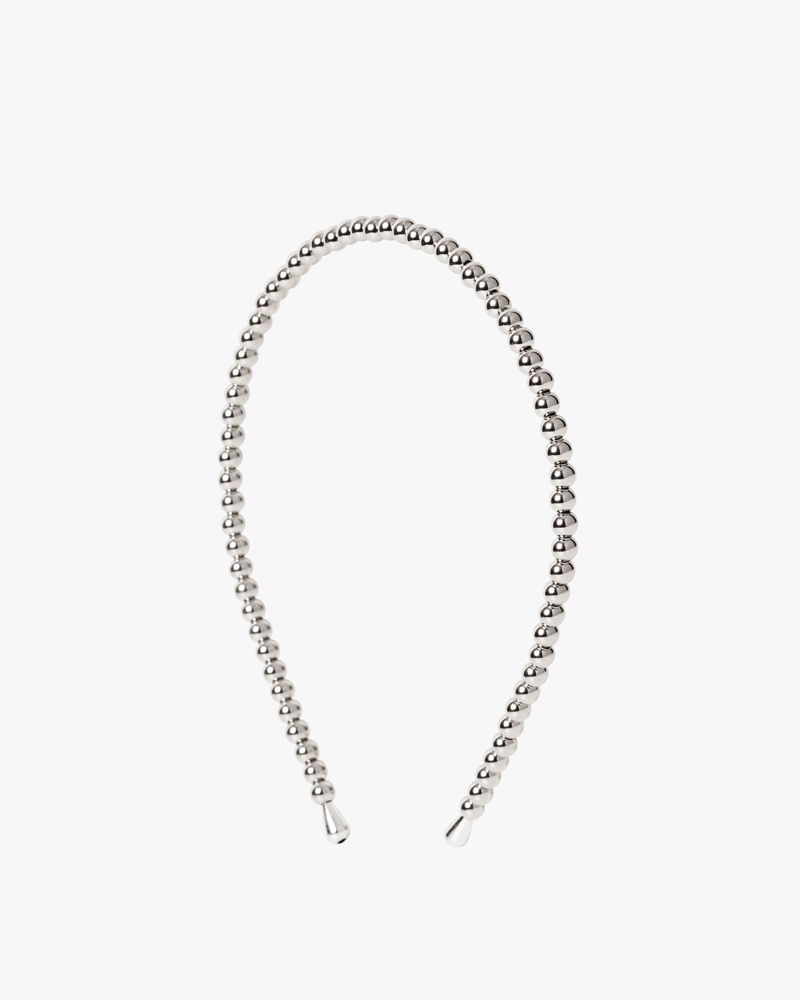 En let og enkel hårbøjle med fine metalliske perler. Den tilføjer et skinnende touch og kan bruges til både hverdag og mere festlige lejligheder.