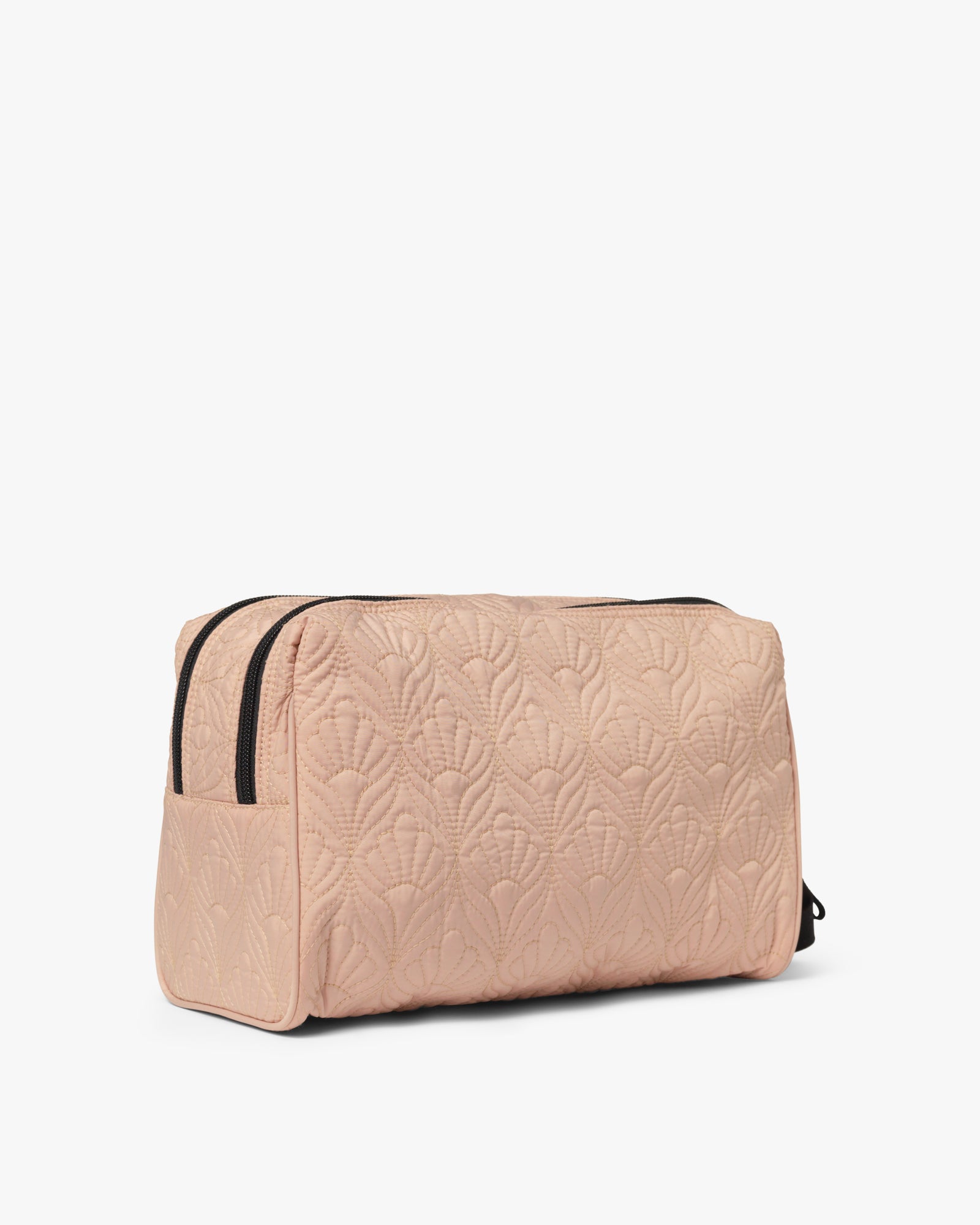 Denne funktionelle toilettaske er designet i et flot quiltet mønster, og dens ydre stof og inderfor er lavet af 100% certificeret genanvendt materiale. Toilettasken har to rum med flere indvendige lommer, så du nemt kan organisere dine sager. Begge rum lukkes med en lynlås, og dertil har den en lille bærehank der gør den nem at have med rundt.