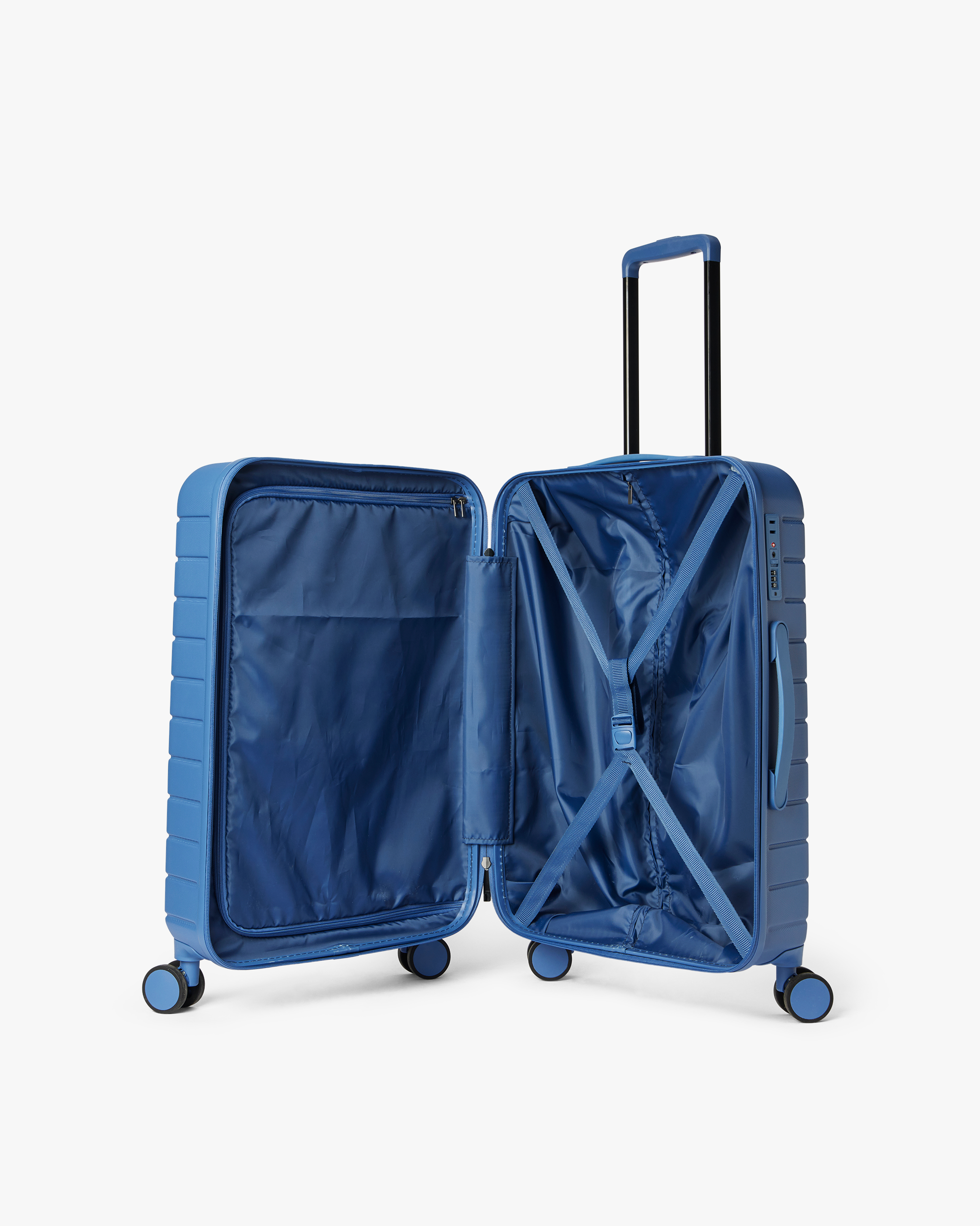 Denne funktionelle kuffert er udstyret med et lynlåsrum og pakkestropper, hvilket giver dig mulighed for at holde styr på alle dine ejendele i et klassisk design. Den kan rumme op til 65 liter og har 4 dobbelthjul, der kan dreje 360 grader, så du kan skubbe den rundt uden problemer. Kufferten er lavet af et let og holdbart hardcase-materiale og har en TSA-godkendt lås, så dine ejendele er sikre. Den er designet med det klassiske Day Et-logo fortil.